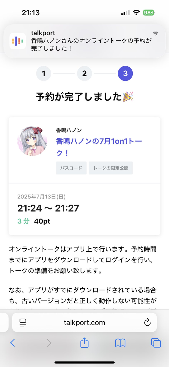 そもそも配信者の動画を観る、という習慣が全くなく、VTuberの事を音ゲー収録楽曲からの情報でしか知らない自分からすればかなり思い切った事をしたなぁと思います。「1on1の3分4000円って高くね???」と少し思いはするも、アイドルの握手会とかの長い版と考えると、まぁそれくらいの価格かと納得するなど。